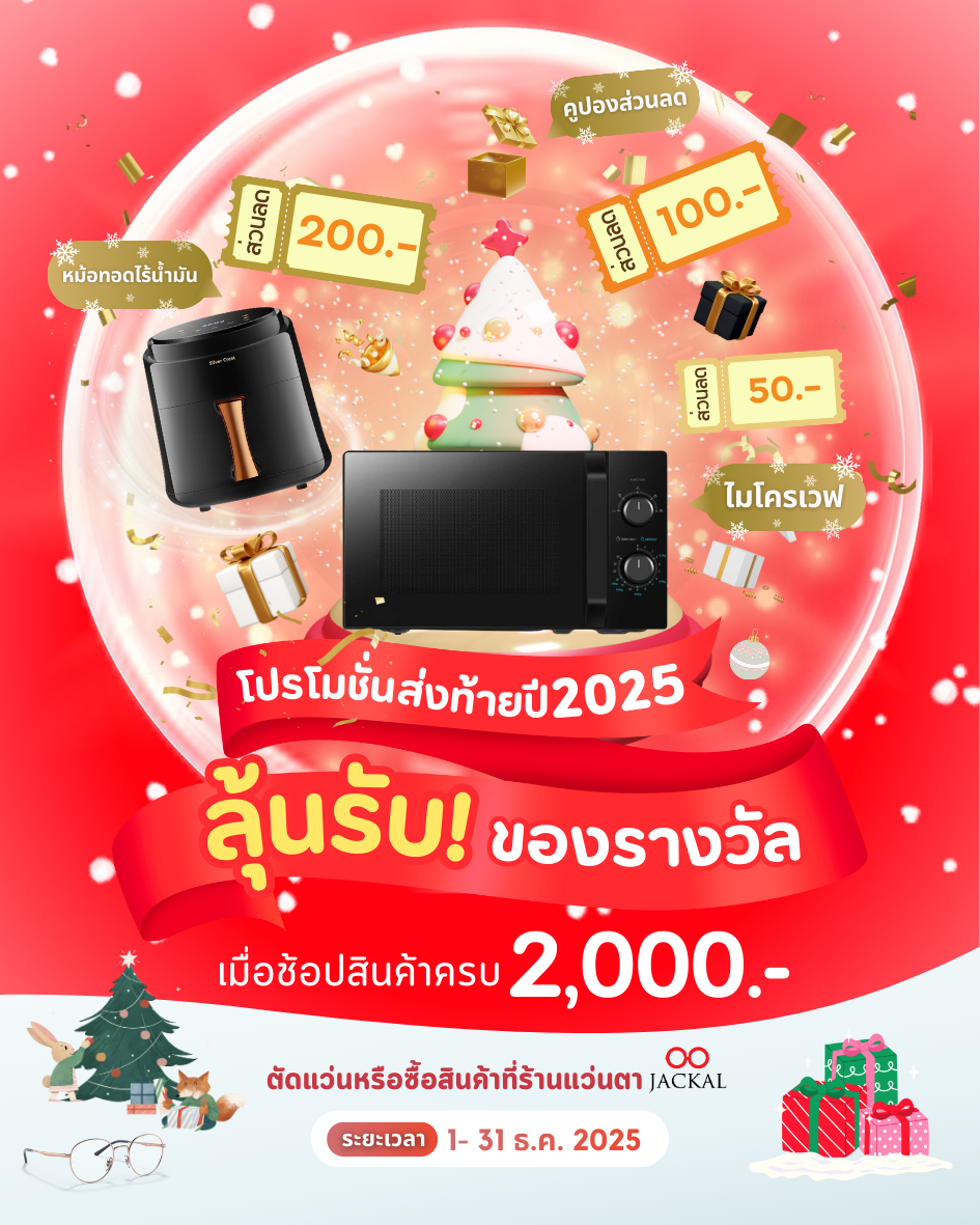 ปีเก่ากำลังจะผ่านไป เตรียมรับปีใหม่กับลุคสุดชิคและของรางวัลสุดพิเศษจาก Jackal ร้านแว่นตาและแฟชั่นไอแวร์ที่คุณวางใจ!
