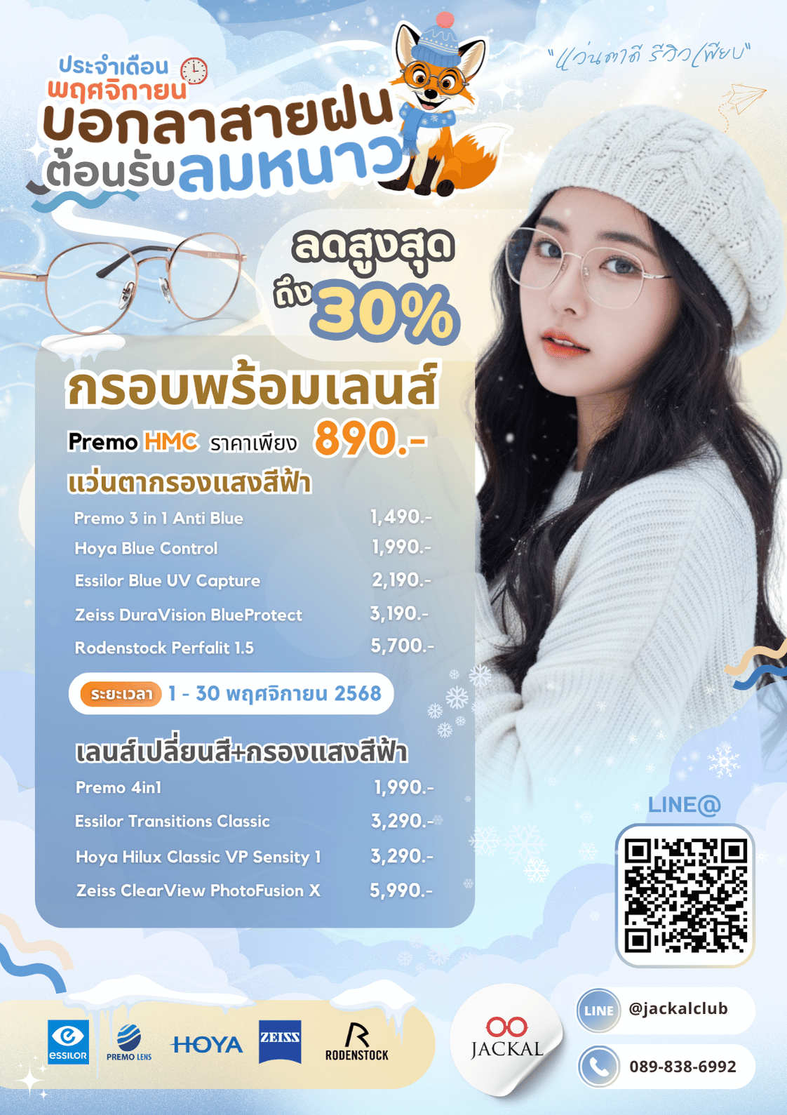 โปรโมชั่นแว่นใหม่ ถึงเวลาอัปเกรดสายตาให้คมชัด! แวะมา ร้านแว่นตา Jackal กรอบพร้อมเลนส์ เริ่มต้นเพียง 890 บาท