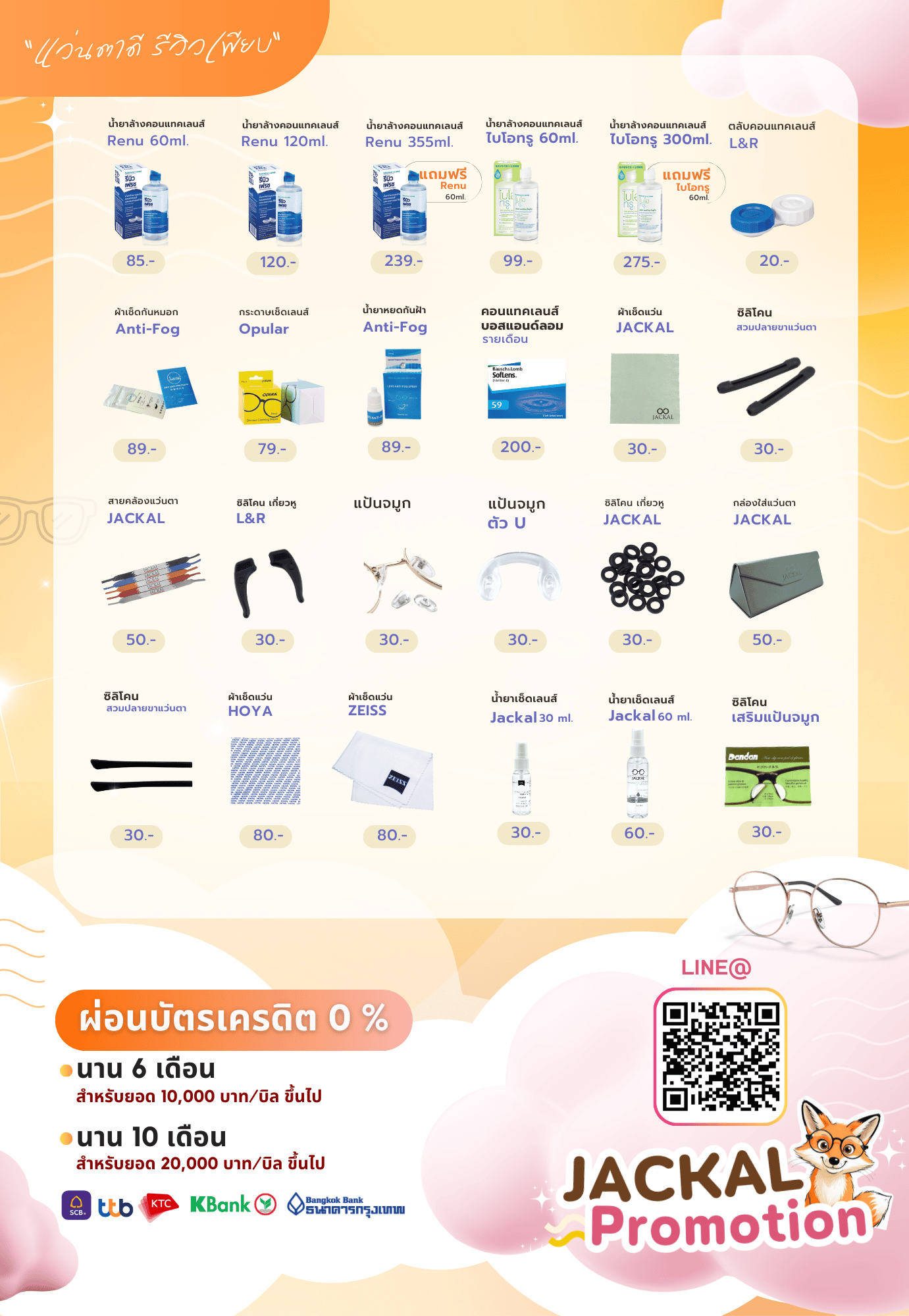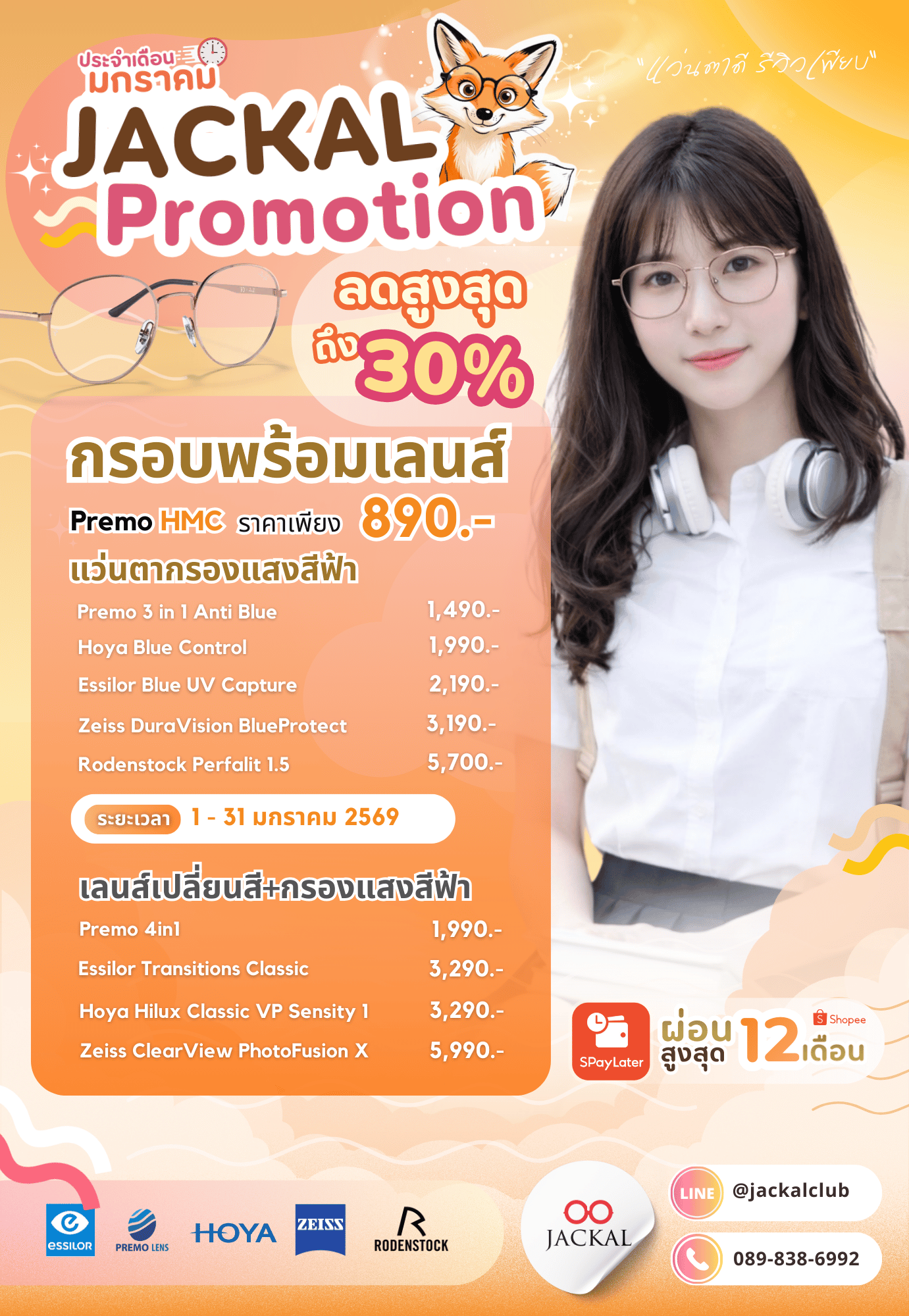 โปรโมชั่นแว่นใหม่ ถึงเวลาอัปเกรดสายตาให้คมชัด! แวะมา ร้านแว่นตา Jackal กรอบพร้อมเลนส์ เริ่มต้นเพียง 890 บาท