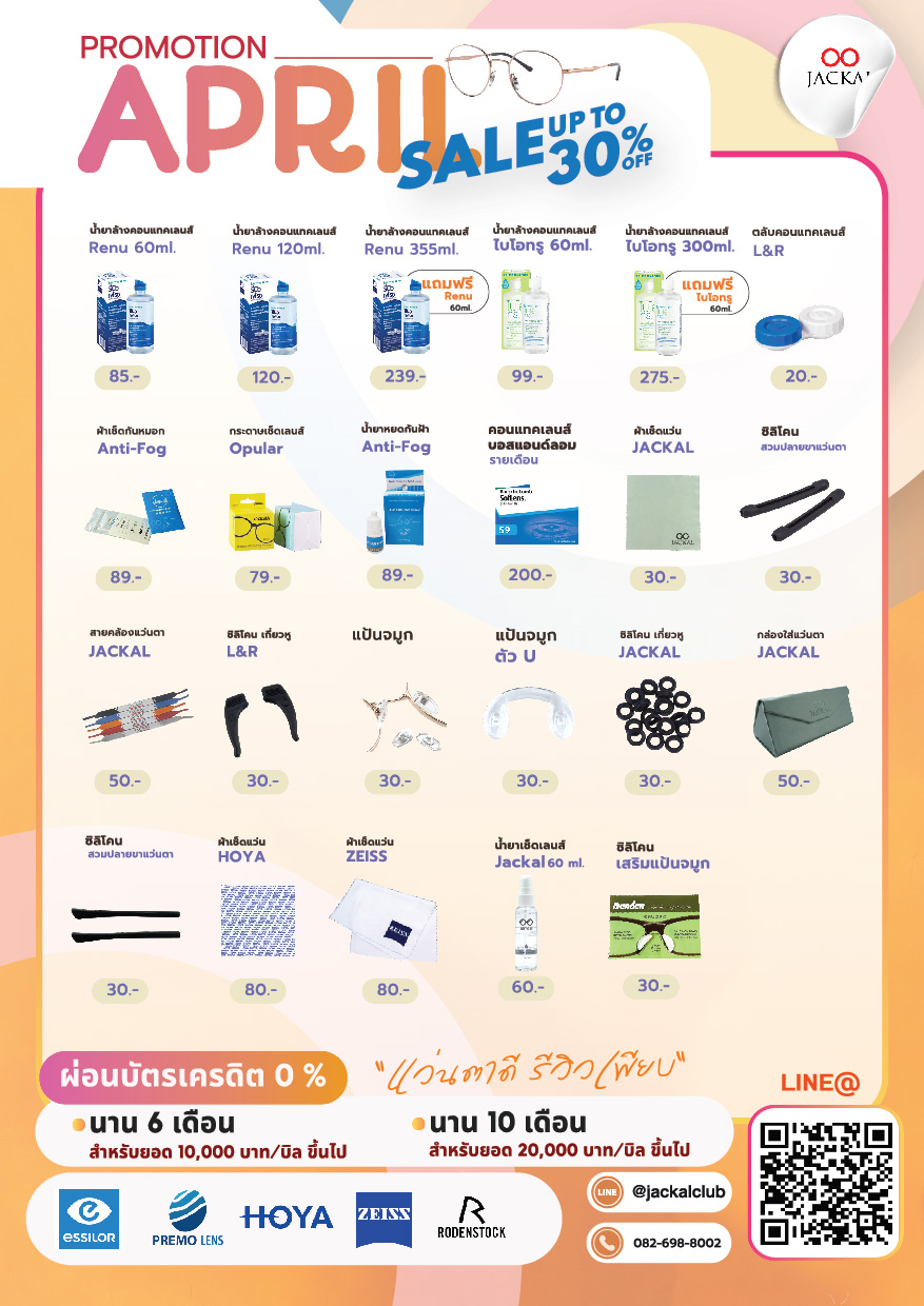 ร้านแว่นตา Jackal (แจ็คเกิล) จัดโปรโมชั่นต้อนรับหน้าร้อน ให้คุณและคนที่คุณรักได้รับสิทธิ์สุดพิเศษตลอดเดือนนี้